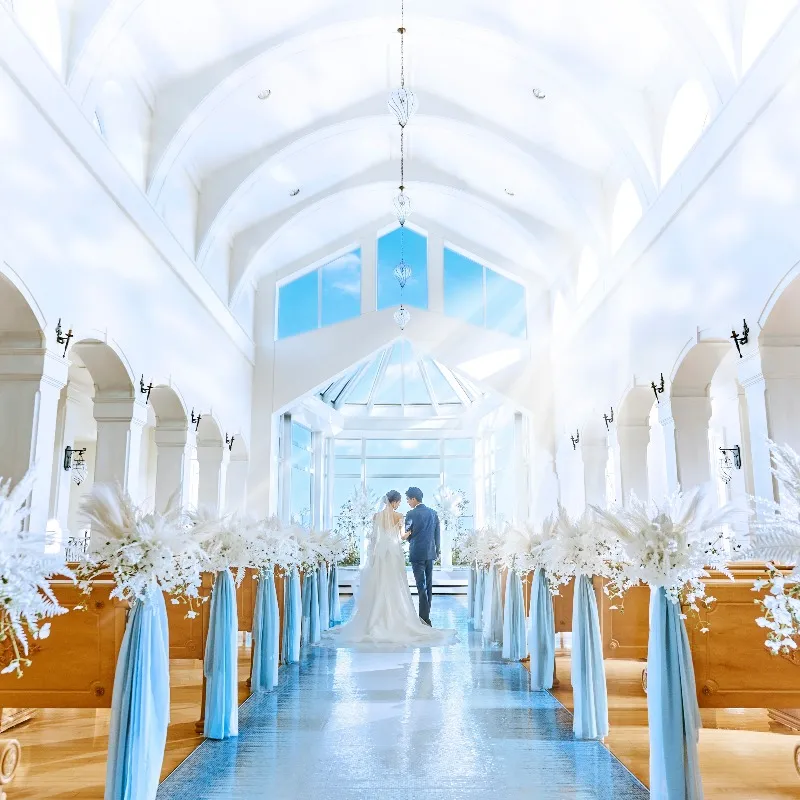 【人気のドレス2着優待特典】★空と海に囲まれたウエディングで夢のひととき★ふたりの憧れが叶う天空チャペル体験&プール付き邸宅で人気演出体験!ドレスが美しく映える全館撮影スポット案内付きでイメージが膨む