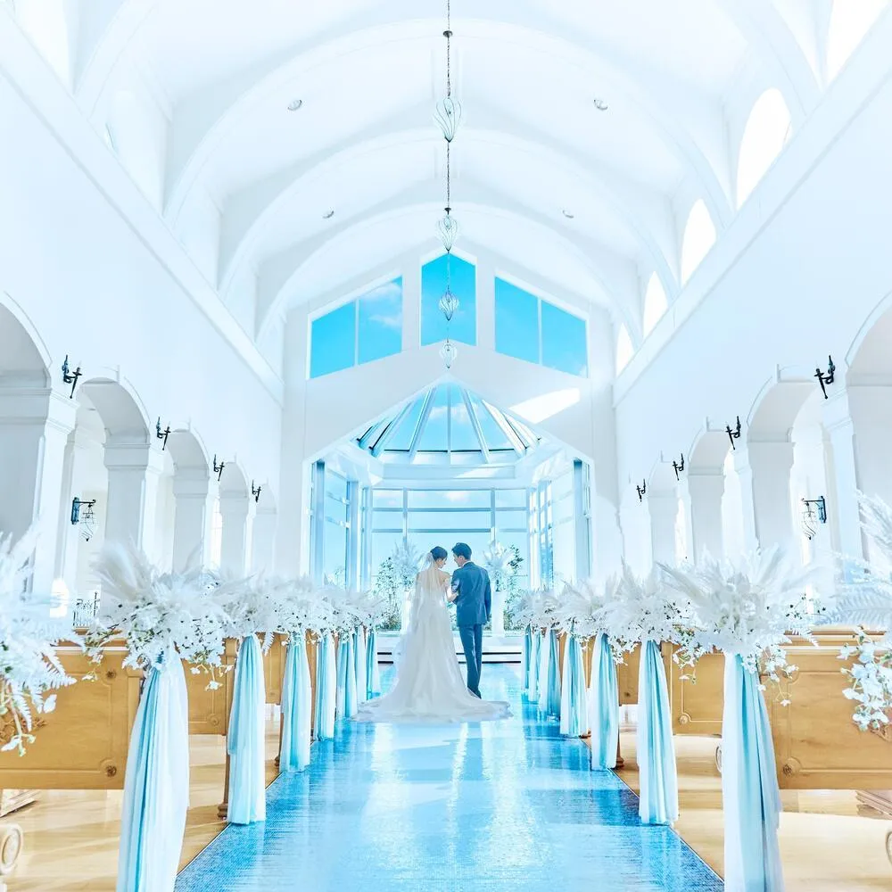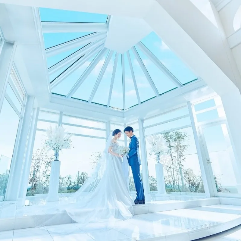 【人気のドレス2着優待特典】★空と海に囲まれたウエディングで夢のひととき★ふたりの憧れが叶う天空チャペル体験&プール付き邸宅で人気演出体験!ドレスが美しく映える全館撮影スポット案内付きでイメージが膨む