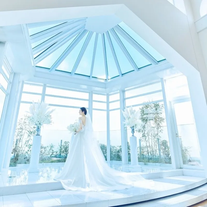 【人気のドレス2着優待特典】★空と海に囲まれたウエディングで夢のひととき★ふたりの憧れが叶う天空チャペル体験&プール付き邸宅で人気演出体験!ドレスが美しく映える全館撮影スポット案内付きでイメージが膨む